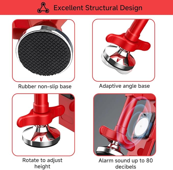 Reinforced rubber base prevents sliding on wood, tile, or carpet, providing reliable security wherever you travel.